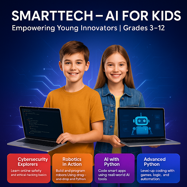 Artificial intelligence (AI) is shaping the future, and kids need to be ready. SmartTech Junior offers engaging, expert-led AI courses for children aged 7-16, fostering critical thinking and creativity to prepare them for a tech-driven world.